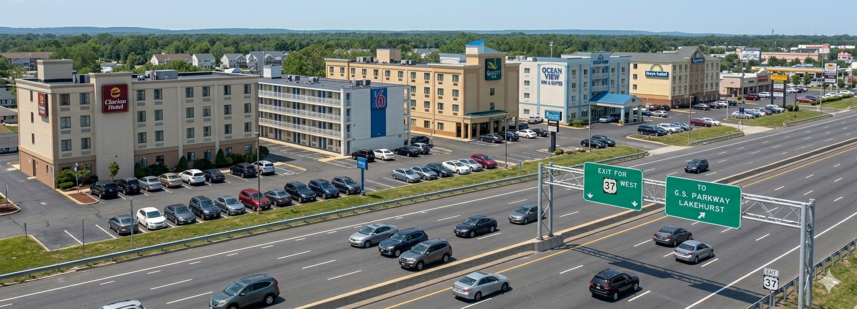 If you want actual hotel amenities — indoor pool, breakfast, reliable Wi-Fi, chain-brand consistency — you’ll need to drive a bit. The good news is that the Jersey Shore has solid options within 20–30 minutes of the boardwalk, and the rates may be more reasonable than trying to stay right in Seaside.